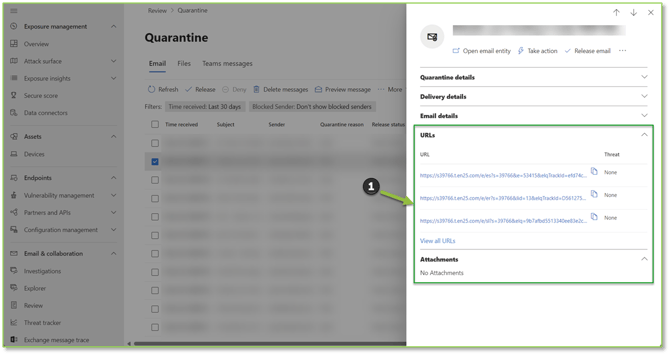 - If an email is captured in Quarantine due to detected malware related to URL or File Attachments but you know that the source is reputable, gather the embedded link or file for the next step.