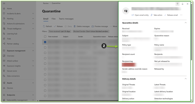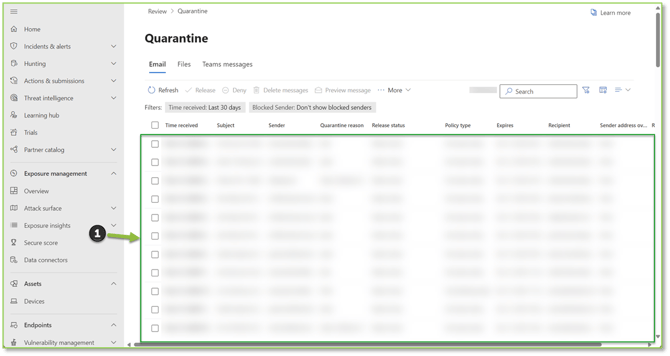 - Navigate to the Quarantine – Microsoft Defender portal, all messages that have been held will be displayed here.