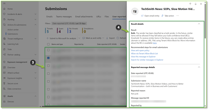 Defender for Email User Submission Queue