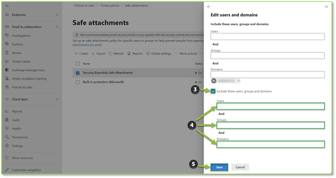 This guide will show an administrator how to exempt a desired internal user, group, or custom domain from having a Safe Attachments policy applied to their mail.