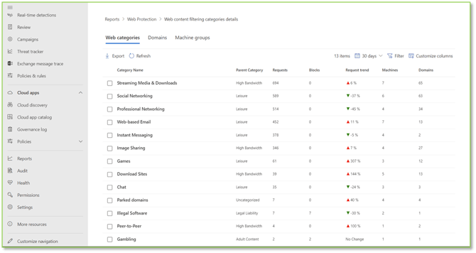 - Navigate to the Filtering Details – Microsoft Defender portal, all the different types of web traffic will be displayed.