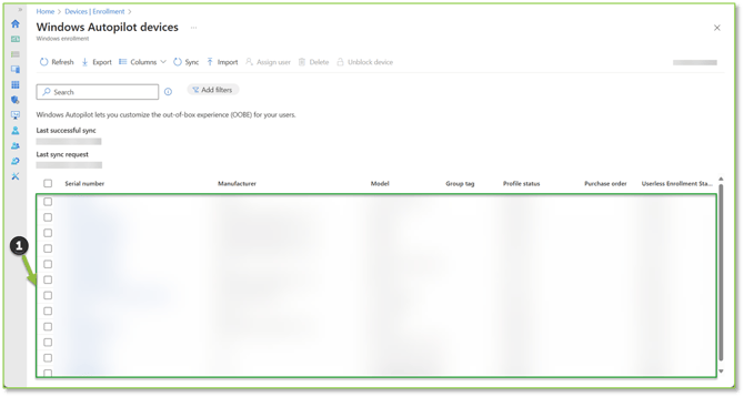 - Navigate to the Windows Autopilot Devices – Intune portal, this report will provide a list of all windows devices that have gone through the Autopilot out-of-box-experience (OOBE). Here you will be able to see the device make and model, as well as if a deployment profile has been successfully issued to the machine. You can select a device serial number to derive more information such as the associated Intune device name, or the last time the device checked in with Intune.