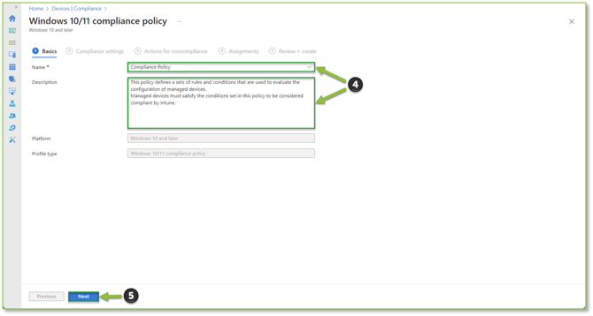 - You will supply basic identification information such as the Name and Description for the policy. Select Next to proceed.