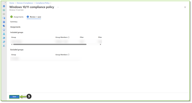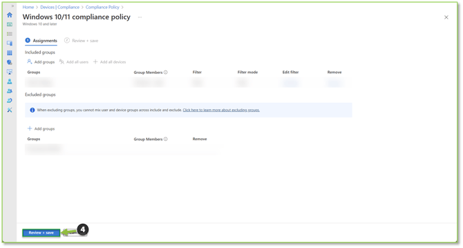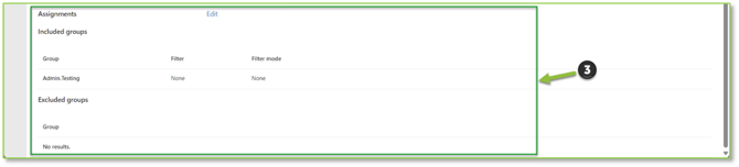 - Assignments: Specifies which Groups will be included or excluded from policy enforcement.