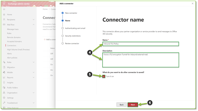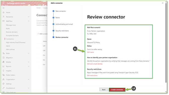 This guide will provide background information on creating an email connector that will specify that inbound or outbound mail fall within a security enforcement such as TLS encryption, etc.