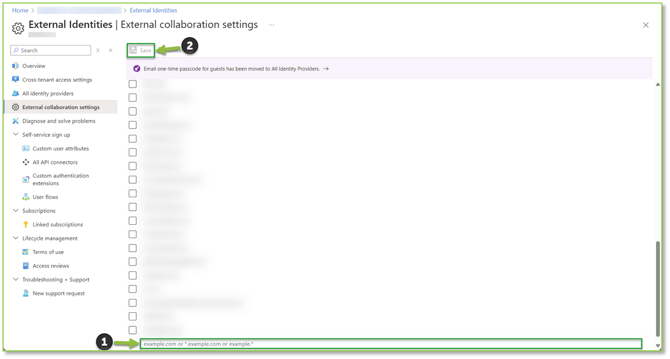 This guide will show an administrator how to add desired domains that will be allowed to receive invitations to shared internal resources.