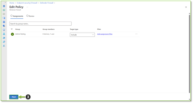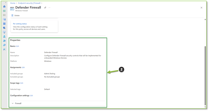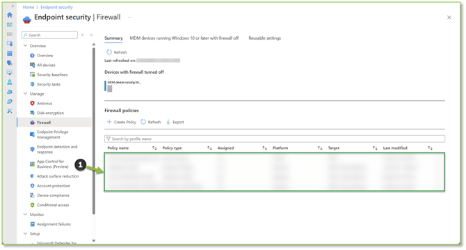 - Navigate to the Firewall – Intune portal, locate and select the policy you wish to alter.