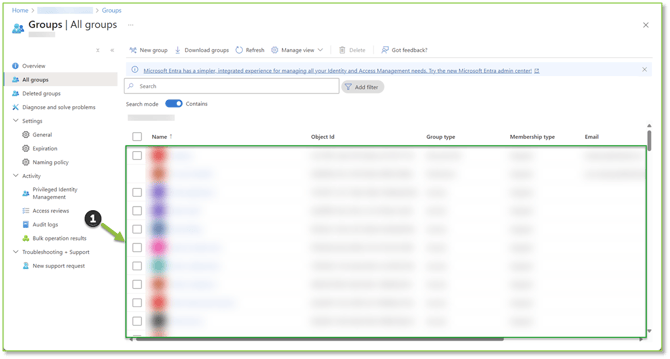 - Navigate to the Groups – Azure Active Directory, locate and select the applicable non-administrative group you wish to add the user to.