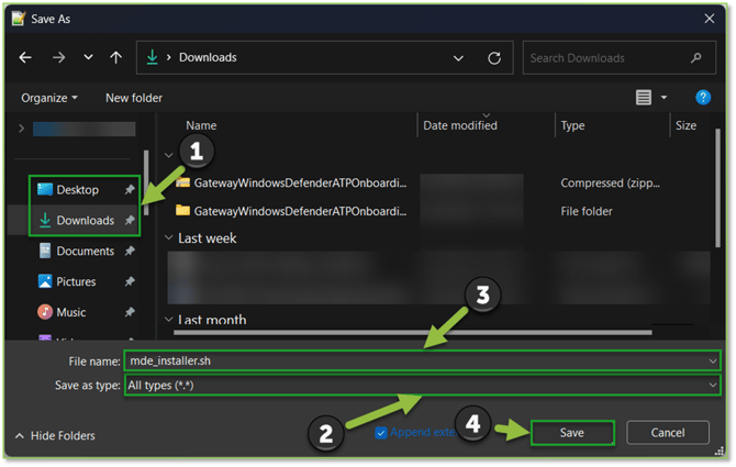 - From the software window we will want to initiate a Save As action since we will be leveraging this script later in the article. For the file location specify somewhere easily accessible such as the Downloads or Desktop folder, we will want to specify the Save as type as All Types (*.*) and for the File name supply mde_installer. sh. Once the .sh file has been specified at the desired directory, select Save to begin script creation.