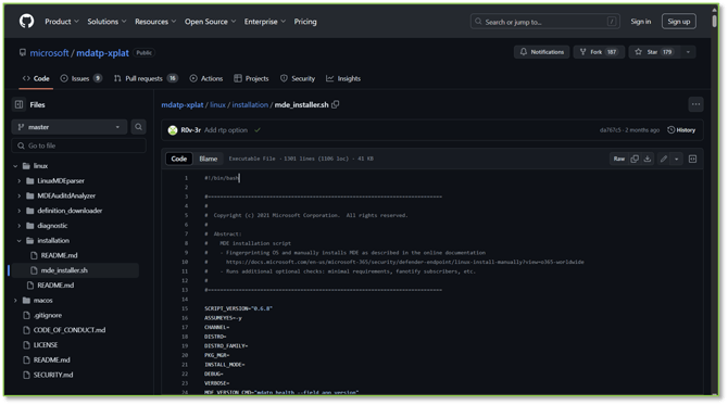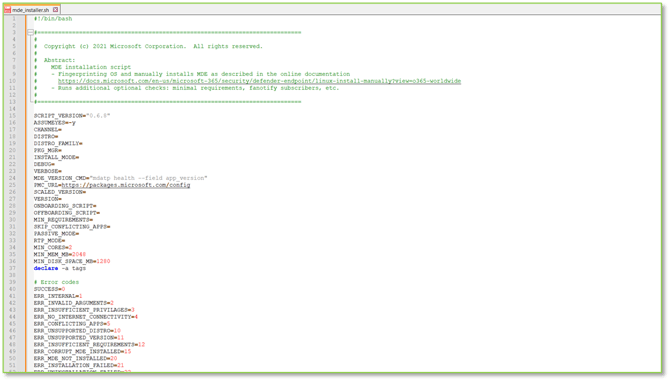 - Microsoft has provided a curated automated bash installer script that simplifies the installation process of the MDE agent and licensure onboarding for the Linux Machine to the Microsoft Defender portal. You can either provision this script on the Linux device itself or you can create and transfer the .sh file to a trusted repository for the Linux Machines to access. For this example, we will be utilizing the later.