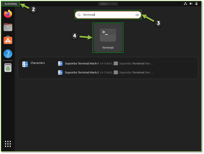 - Once we have verified that both files are present on the device, we will want to initiate a command line session. This can be done by leveraging the Activities functionality and within the search field providing Terminal, this should return the utility in the list below the field, and we will want to select it to execute the mde_installer.sh script. For this demonstration we are using Ubuntu 20.04 Jamming Jellyfish, if the UI or functionality is different depending on your flavor of Linux, please leverage the utility based on your distribution that allows you to search for applications to initiate a Command Line session on the machine.