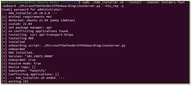 sudo ./mde_installer.sh --install --channel insiders-fast --onboard ./MicrosoftDefenderATPOnboardingLinuxServer.py --min_req -y