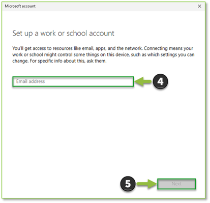 - In the text field, enter the user’s work account email (UPN as shown in Entra ID). Click Next to proceed to authentication.