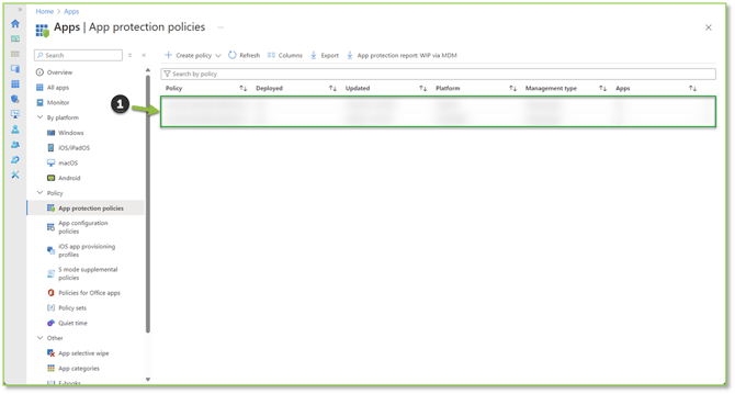 - Navigate to the App Protection Policy - Intune portal, locate and select the policy you wish to alter.