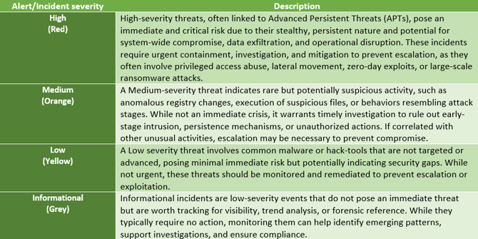 - Incident Severity: Indicates the level of risk associated with the incident, such as "High", "Medium", or "Low". Guides the urgency and extent of response actions.