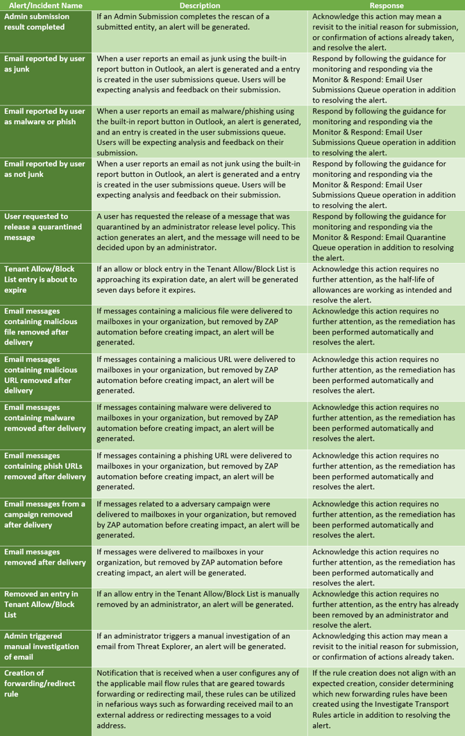 - Review the Defender for Email Alert Queue
