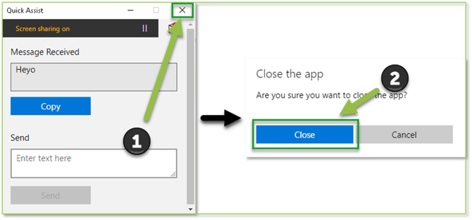 - When you’re done and want your screen back to yourself, just hit that X in the top right of the Quick Assist window, and then Close. If you need to chat with IT again, you’ll start this tango from the top.