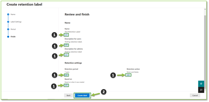 Retention Label Creation
