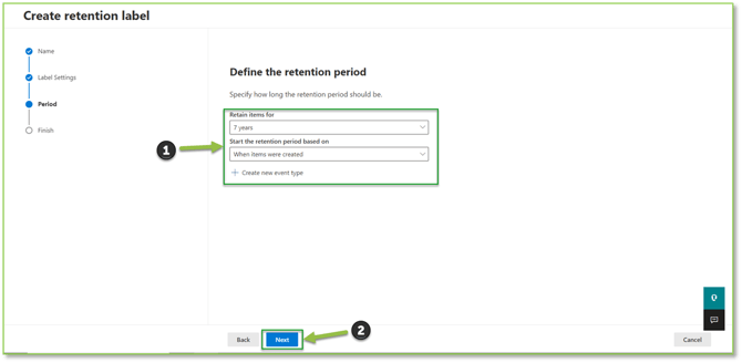 - You will be asked to specify the retention period of the item. Select Next to continue.