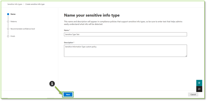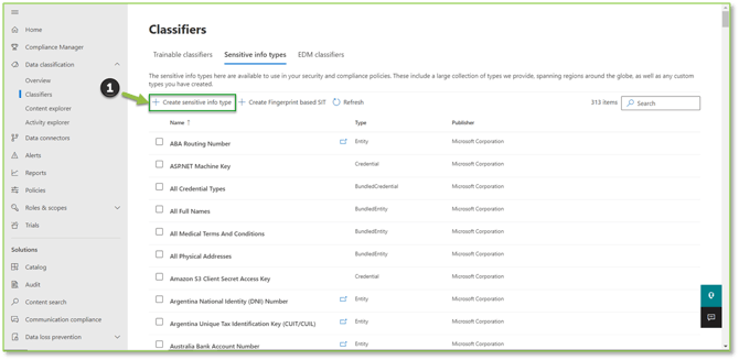 - Navigate to the Sensitive Info Types - Purview portal, locate and select Create Sensitive Info Type.