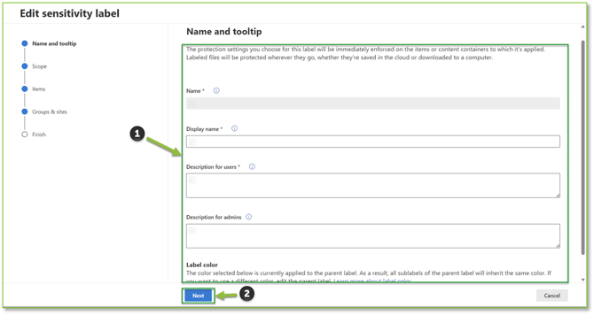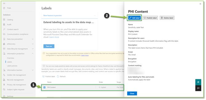 This guide will provide background information on how to modify an existing sensitivity label that is being applied to items.