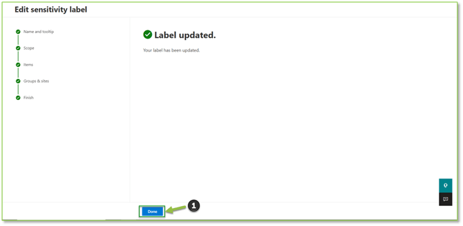 - A final prompt will notify you that the label has been updated, select Done to finalize the modification process.