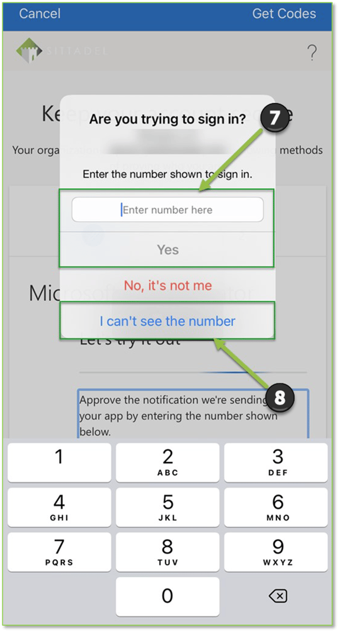 - You will be prompted to verify an MFA challenge during the registration process, a two-digit number will be displayed that you will be required to enter if you didn’t catch the code select the I can’t see the number option this will display the code again; tap the number to redisplay keyboard.