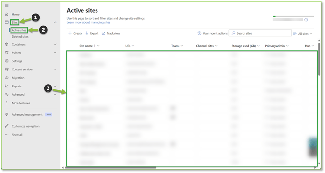 - Navigate to the SharePoint Admin Center (Which can be found by accessing the Admin portal, selecting All Apps, and finding the SharePoint Admin page). Once in the admin center, Select Sites | Active Sites, locate the SharePoint site you want to initiate the report for. You need to be an owner of the site to access the site usage section.