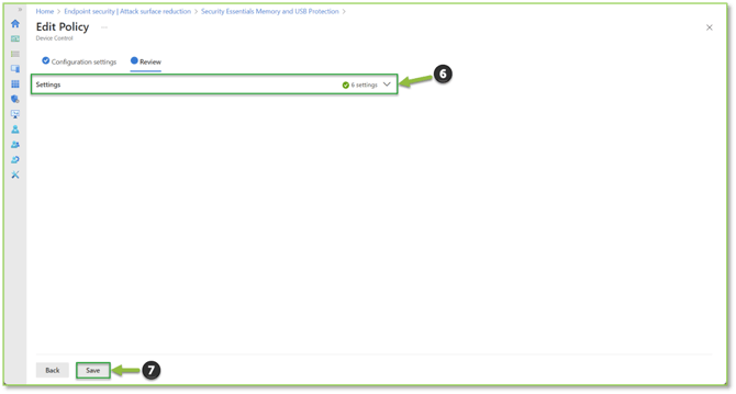 - Navigate to the Attack Surface Reduction – Intune portal, locate and select the Security Essentials Memory and USB Protection policy or an equivalent Device Control policy.