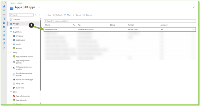 - Navigate to the All Apps – Intune portal, locate and select the desired application you want to modify.