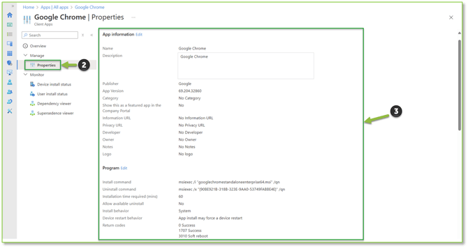 - Upon opening the application package, select the Properties tab; all the information of the app will be displayed, from naming all the way to group assignment. Seven points of interest will be available to Edit. You can modify the sections as needed.