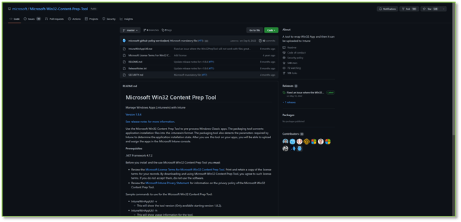 - Download the Win32 Content Prep Tool from GitHub, by following the links in Microsoft’s documentation, or by finding the Win32 folder included in the deployment package provided. Ensure you have the IntuneWinAppUtil.exe application.