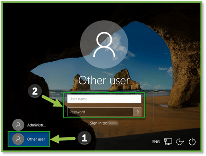 - From the sign in screen, select “Other User”, and input the organization username and password.