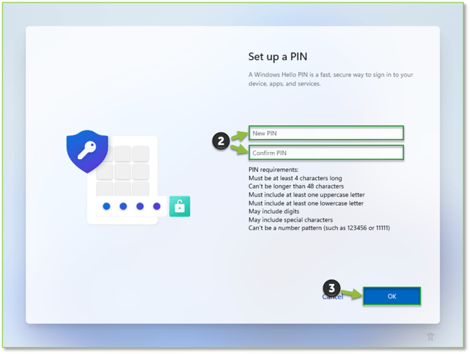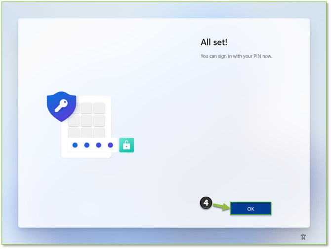 - Your PIN is now set up and ready to use for signing in to your device. Select OK to finish setting up Windows Hello.