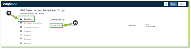 - After both scripts have been generated, we will want to access the area of the RMM tool that allows conditional remediation for devices.